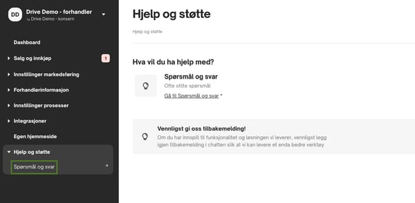 Link til FAQ brukermanualer finner dere i Drive Dealer under "Hjelp og støtte".